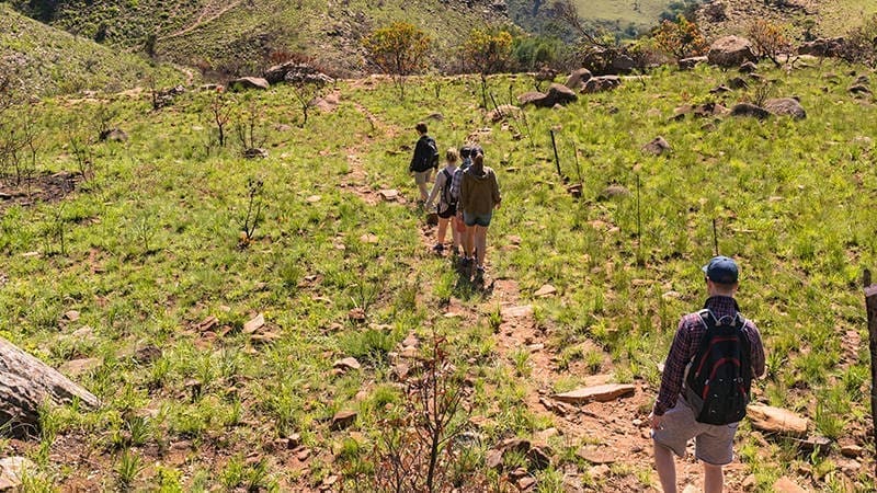 Der Waterberg Plateau Nationalpark bietet eine friedliche Umgebung mit wunderschönen roten Bergen, die im Sonnenuntergang aufleuchten – perfekt für einen Sundowner. Erkundet die markierten Wanderwege für ein intensives Naturerlebnis. Mit einem Guide an eurer Seite lernt ihr mehr über die Umgebung und wagt euch hinauf auf den Waterberg, wo das riesige Plateau atemberaubende Ausblicke über die Kalahari Ebenen bietet. Oben genießt ihr einen erfrischenden Sundowner, während die Sonne untergeht und die Sterne am Himmel erscheinen. Dieser Moment der Ruhe mitten im Abenteuer ist ein echtes Highlight eurer Namibia Reise, bei dem sich pure Entspannung mit natürlicher Schönheit verbindet.