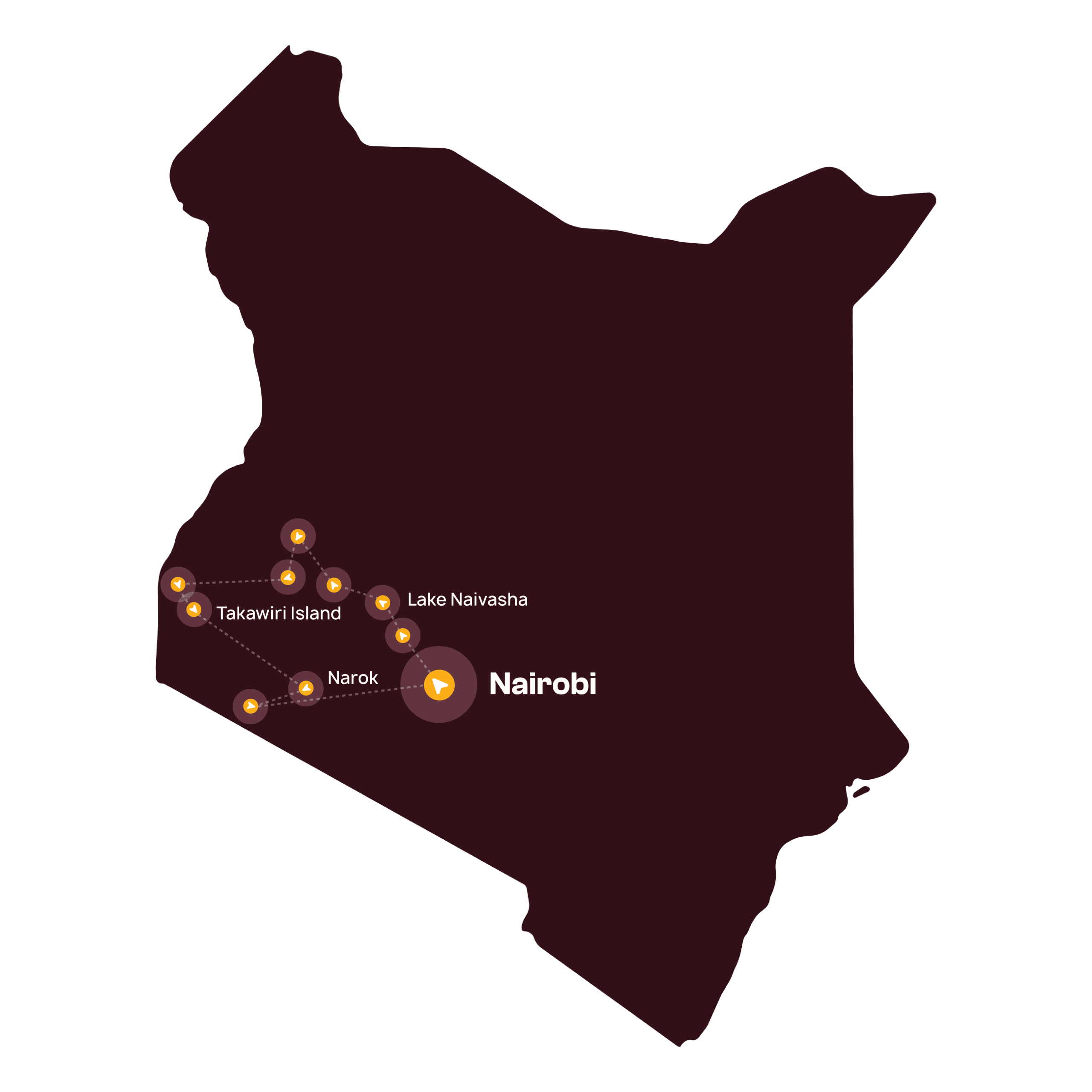 Spiegelglatte Seen, Inselatmosphäre und abseits der Touristenströme. du beginnst am (relativ) kleinen Naivasha-See und fährst in Richtung der ugandischen Grenze zu Kenias drittgrößter Stadt: Kisumu. Eine gemütliche Stadt am Viktoriasee mit leckerem Fisch und in der Nähe des Regenwaldes in Kakamega. Von Kisumu aus erkundest du mit dem Boot die Inseln Mfangano und das nahe gelegene Takawiri. Sandstrand und Palmen auf einer Insel? Das gibt es hier! Ach ja, auf dem Rückweg hältst du zwischendurch in der Maasai Mara, um die Big Five zu beobachten.