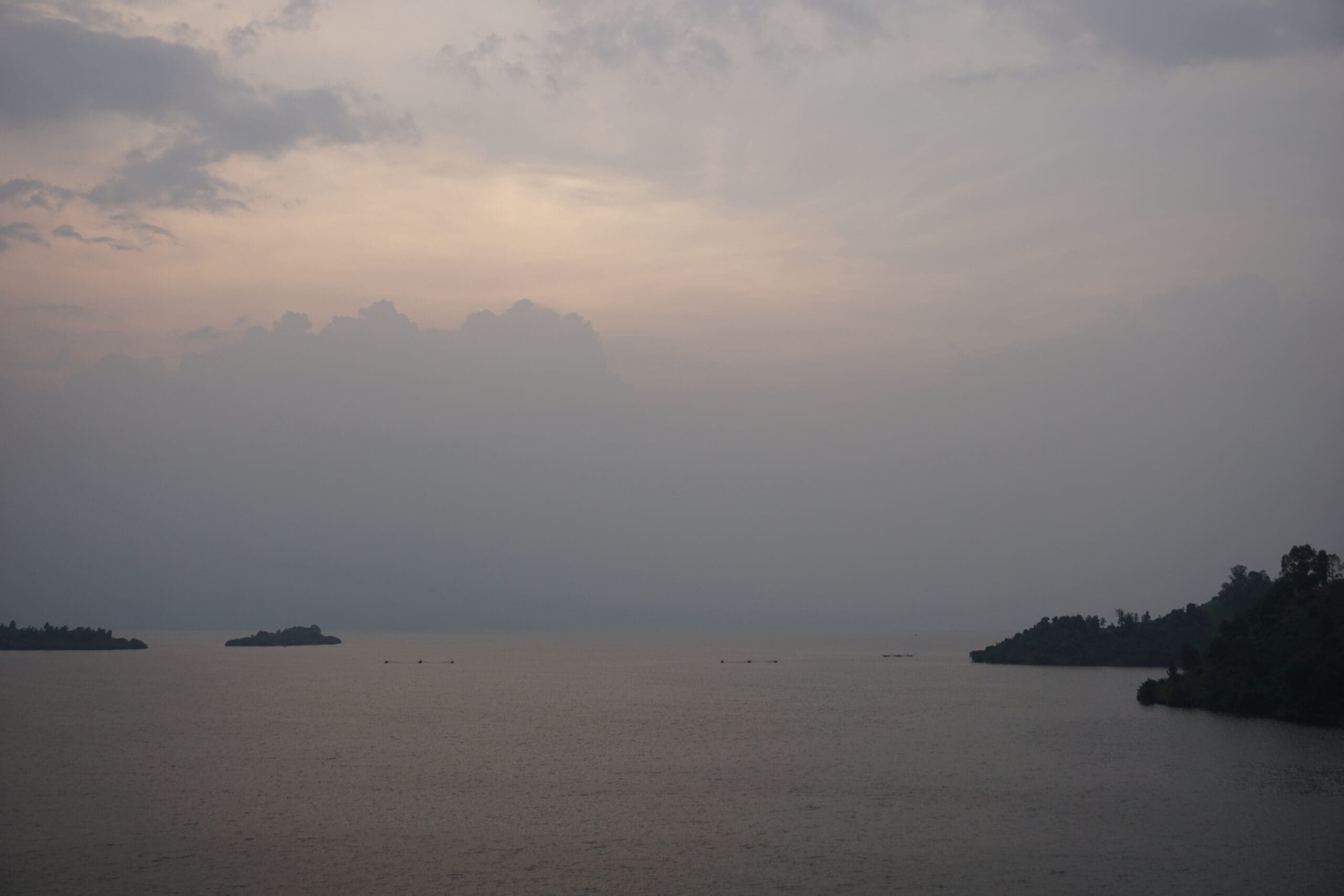 Der größte See Ruandas. Überall Berge wohin du schaust und endlos blaues Wasser. Der Lake Kivu dominiert die Grenze zum Kongo und liegt mitten in Afrikas grüner Great Rift Valley.