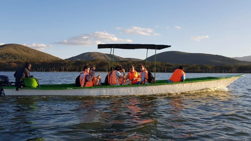 Hoewel unaniem verkondigd werd dat de Magadi motorsafari het mooiste onderdeel van onze reis zou zijn, is het totaalplaatje uieindelijk hetgeen wat het onvergetelijk maakt. Allereerst zijn we in Nairobi geweest, hebben we Lake Naivasha bezocht en een mountainbike tour gedaan door Hell’s Gate National Park. Nairobi alleen al is voor de meesten onder ons een compleet andere wereld en dat betekent dat je heerlijk de toerist kan uithangen. Met alle enthousiaste lokale kiddo’s op de foto gaan, een viewpoint bezoeken op het heli-pad van een wolkenkrabber in CBD, de lokale cuisine nuttigen en lokale kroegen aantikken, een twerk sessie ontvangen in de nachtclub en onze gids het hemd van haar lijf vragen over de verbijsterende levensstijl, gewoonten en gebruiken van het Keniaanse volk.